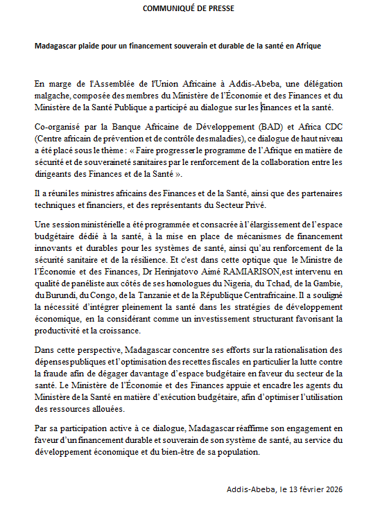 Madagascar plaide pour un financement souverain et durable de la santé en Afrique